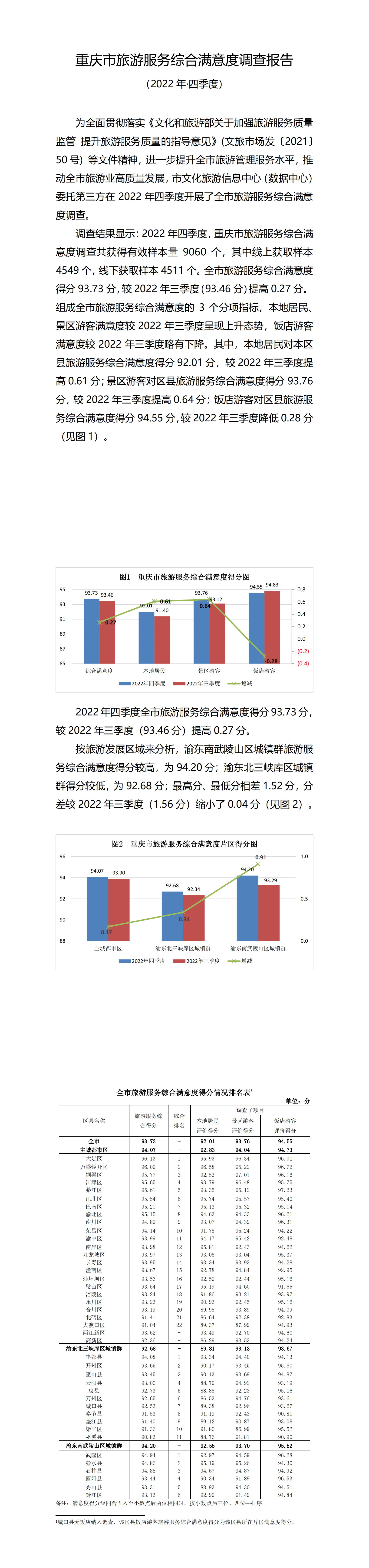 重庆市旅游服务综合满意度调查报告(2022年·四季度)